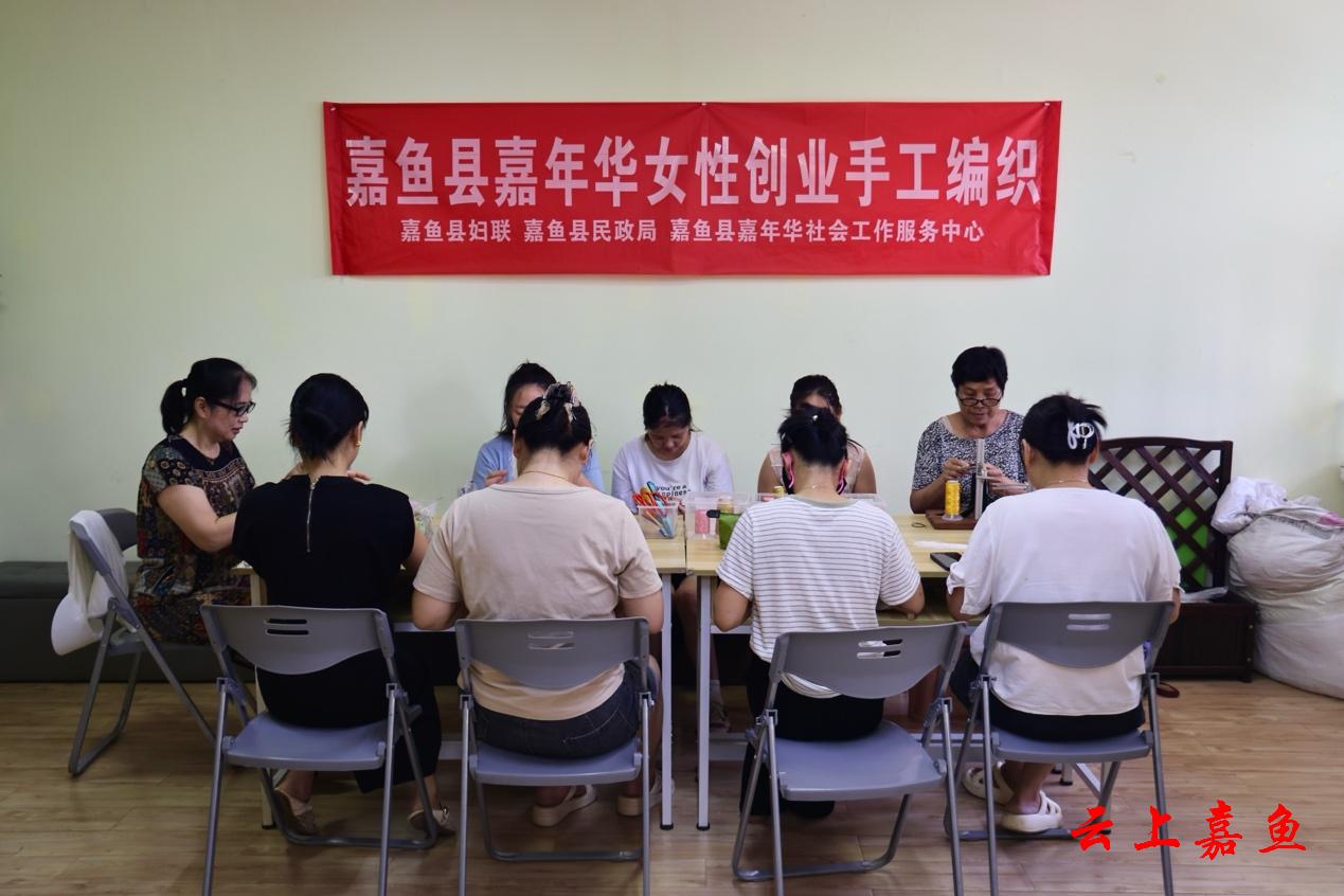 近日,在嘉魚縣嘉年華社會工作服務中心的手工編織工坊里,十幾位媽媽正圍坐在一起,指尖翻飛,線繩在手中穿繞,很快便變成一個個精致的小掛件。有人一邊低頭編織,一邊和旁邊的姐妹輕聲聊天,孩子的學業、家里的瑣事、最新的訂單……伴隨著歡聲笑語,生活與工作在這里自然交織。